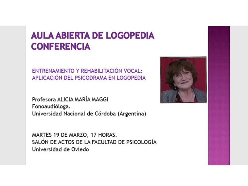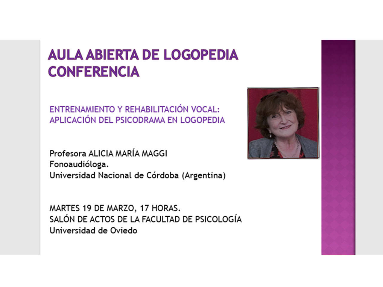 Conferencia: "Entrenamiento y Rehabilitación Vocal: Aplicación del Sicodrama en Logopedia" - Facultad de Psicología. Escuela Universitaria de Logopedia.